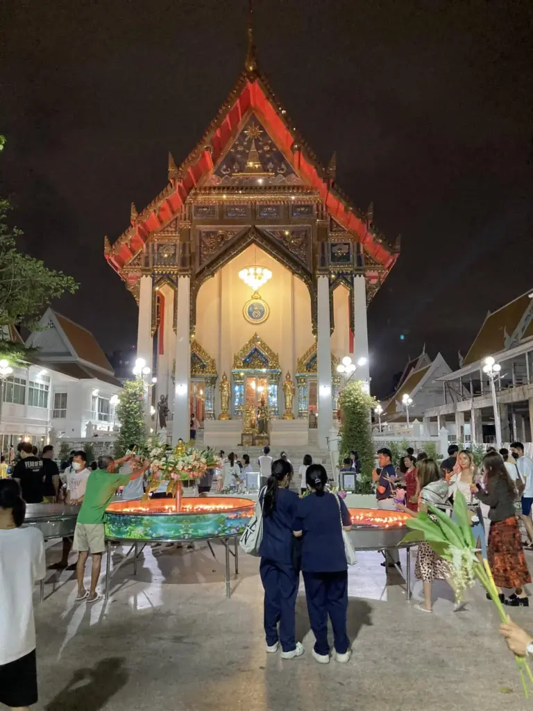 年に3回あるタイの仏教の祝日、残りの2つのうちの1つはマーカブーチャวันมาฆบูชา 。これは、お釈迦様がウェールワン寺院を訪れたとき、偶然に1250人もの成道した弟子が一堂に会したという出来事を記念して定められた日で、日本語では「万仏節」と訳されます。今年は2月24日。