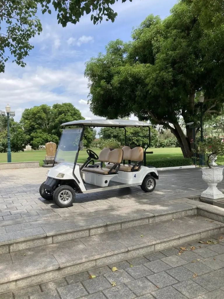 広さは46エーカー(186千㎡)あるので、歩いて廻ると、外から見るだけでも暑い中タップリ1時間はかかります。体調次第でゴルフカートのレンタルをおすすめします。