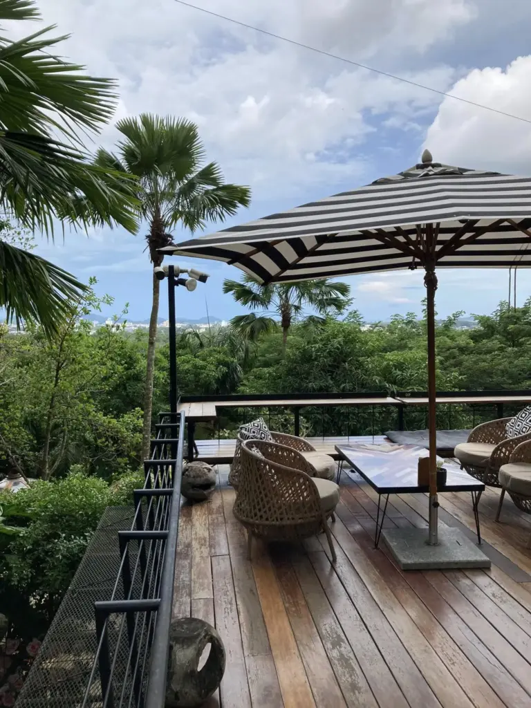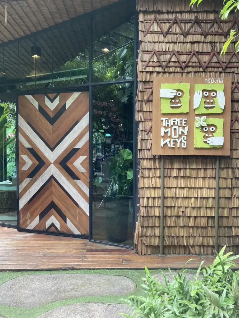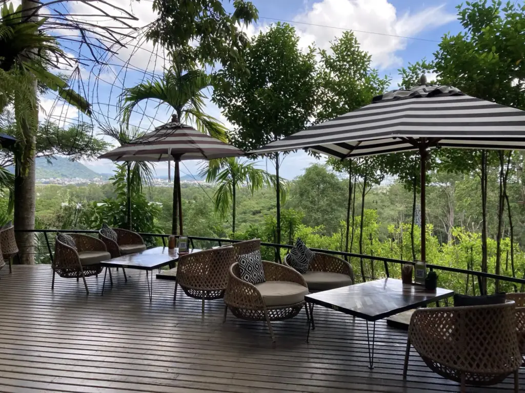 プーケット旧市街を訪れ、もし時間に余裕があるなら、車で20分くらいの山の中腹にあるスリーモンキーズThree Monkeys というレストランをオススメします。山の傾斜を利用した、コンセプトの異なる複数のレストランには、プーケット市街とその先の海を見渡せる席もあります。食事しない場合は、BABOONというカフェに案内されます。