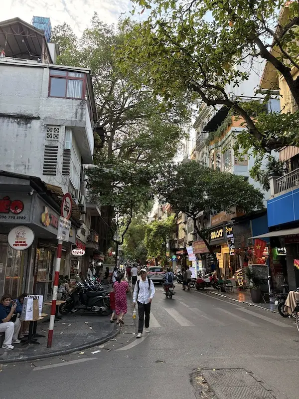ハノイ大聖堂に向かって右横の道をいくと大通りに出ますが、この辺りはもはやフランスの香りはせず、普通に東南アジアの屋台っぽいお店が並んでいます。