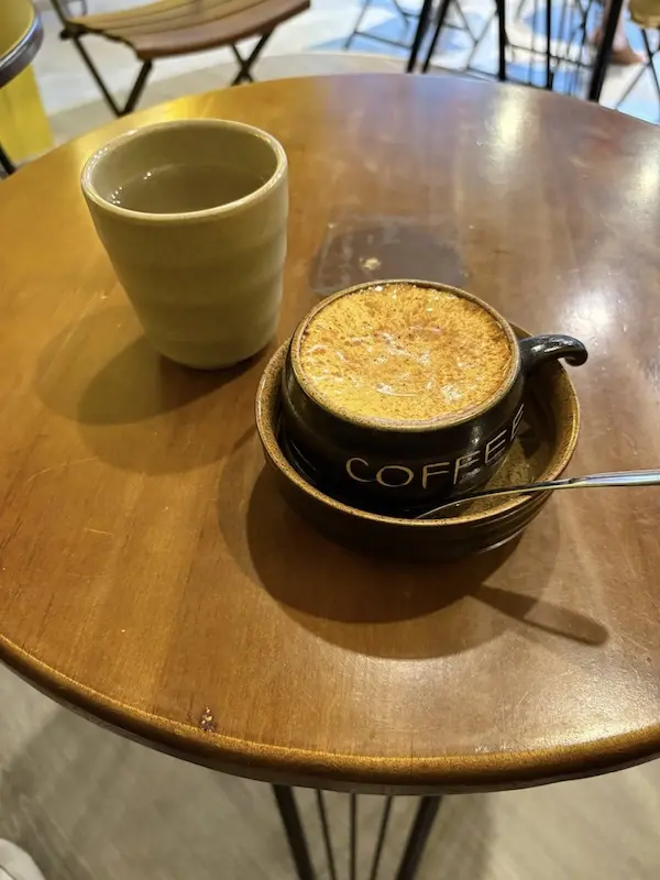 そして、この辺りのカフェは、パリのように道に突き出て座るタイプが多いです。が、いかんせん椅子とテーブルが低くてちゃっちいところがやっぱり東南アジア。