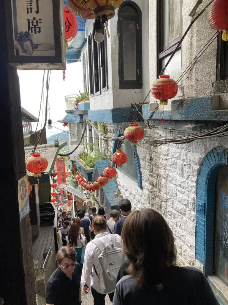 九份では、お土産物や食べ物屋が並ぶ基山街を歩き、展望台で海の景色を見てから、阿妹茶樓でお茶を飲み、豎崎路を下るという定番コースを辿りました。阿妹茶樓は「千と千尋・・・」で有名な茶藝館ですが、そこに入ってしまうと当然建物の外観が見られないので、お茶をするのは、向かいの九份茶坊や海悦樓などがいいのかもしれません。