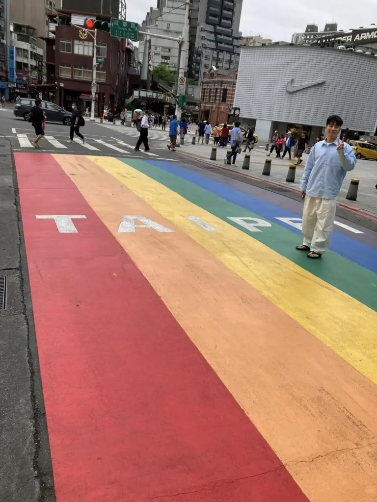 台北の渋谷、原宿のような若者の街、西門町。MRT西門駅の6番出口を出たところに、レインボーカラーでマーキングされた道路があり、ちょっとしたフォトスポットになっています。でも、ここは車の通るれっきとした車道。観光客は、車の来ないタイミングを見はからって写真を撮っていますが、ちょっと危ないですね。日本だとすぐ係員が出て規制が始まることでしょう。