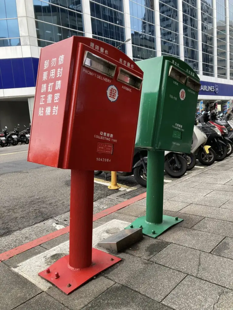 台湾では、国内専用の緑色ポストと、航空便・速達用の赤色ポストが並んで設置されていて、それだけでも結構かわいい感じですが、龍江路にある郵便局の前には、2つ並んでかしげているポストがあります。他にも「木の下にあるポスト」や「距離を置いているポスト」などがあるらしく、暇なら地図を片手に珍しいポストを探すのもいいかもしれませんね。