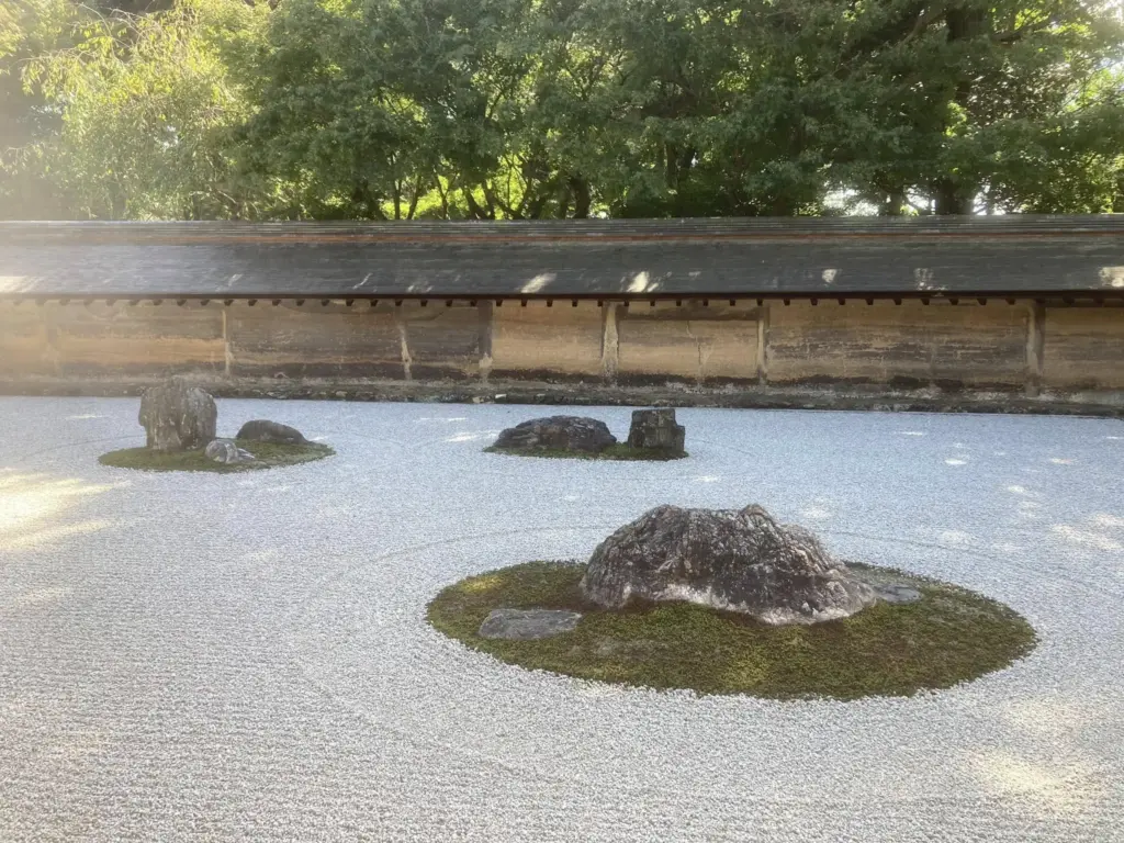 Ryoanji is a famous Zen temple in Kyoto for its Rock Garden. The garden has no trees, no flowers, no paths, no creeks, no ponds…. All it has are waves of white pebbles and small 15 rocks on mossy soils. It looks like a miniature 15 islan... -
