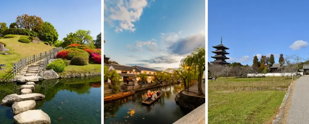- Kurashiki Bikan Historical Quarter: A picturesque district of white-walled buildings and canals preserving Edo-period charm.